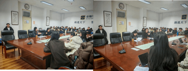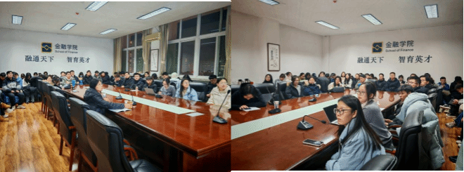 2024年11月28日晚,2024-2025学年第6期学术沙龙活动在石婧楠同学的主持下如期举行,本次沙龙的主题是“数字经济对保险发展的影响研究——基于中介效能视角”,由2024级保险专硕的陈俐璇、姚茜同学为大家作汇报讲解,本次沙龙有幸邀请到王朝晖老师和卞小娇老师作为讲评嘉宾,参加本次沙龙的是来自2024级各专业的员工。