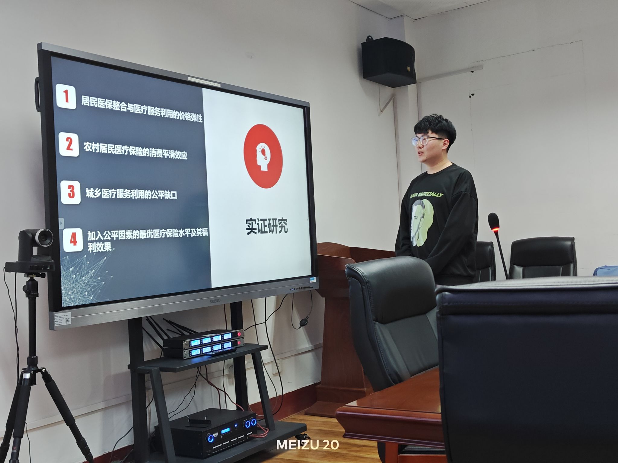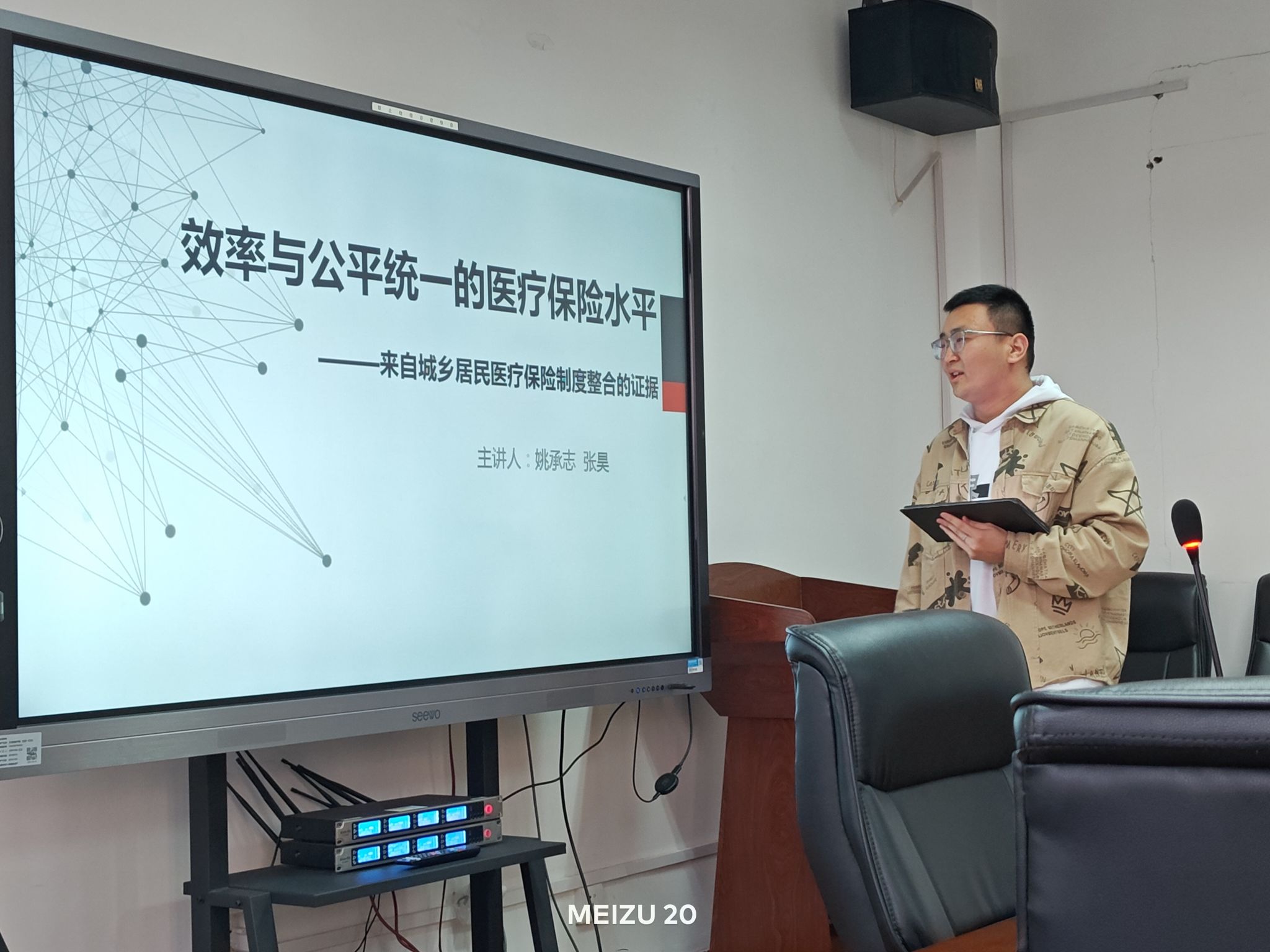 2023年4月13日晚,2022-2023学年第11期学术沙龙活动在刘依同学的主持下如期举行,本次沙龙的主题是“效率与公平统一的医疗保险水平——来自城乡居民医疗保险制度整合的证据”,由2022级保险专硕班的姚承志和张昊为大家作汇报讲解,本次沙龙有幸邀请到高侯平老师和张青枝老师作为讲评嘉宾,参加本次沙龙的员工来自2022级各专业。