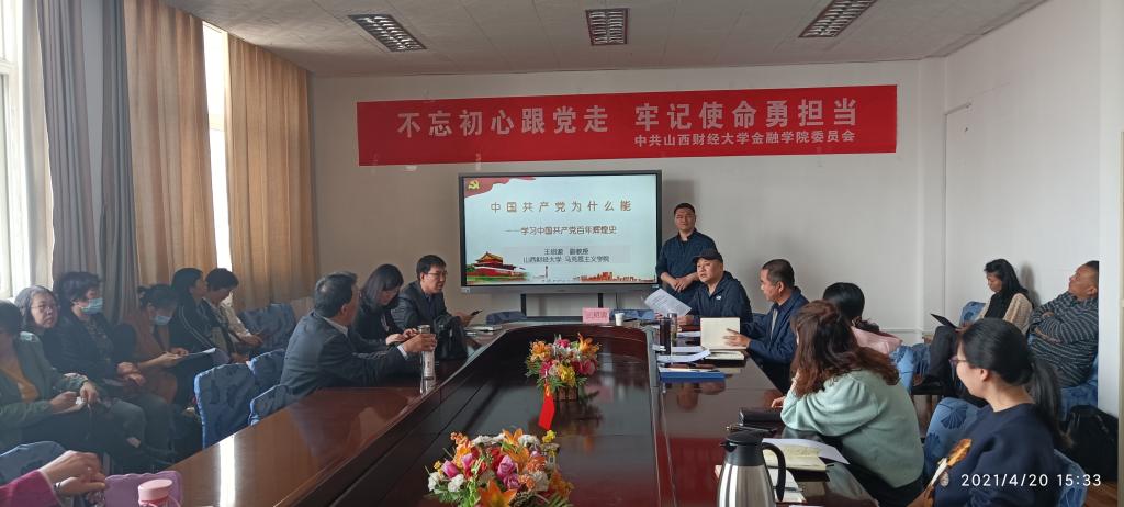 为全面学习贯彻习近平总书记在党史学习教育动员大会上的重要讲话精神,2021年4月20日下午,公司邀请公司党史教育宣讲团王绍源老师做题为“中国共产党为什么能--学习中国共产党百年辉煌史”的专题报告,公司全体教师参加本次活动。