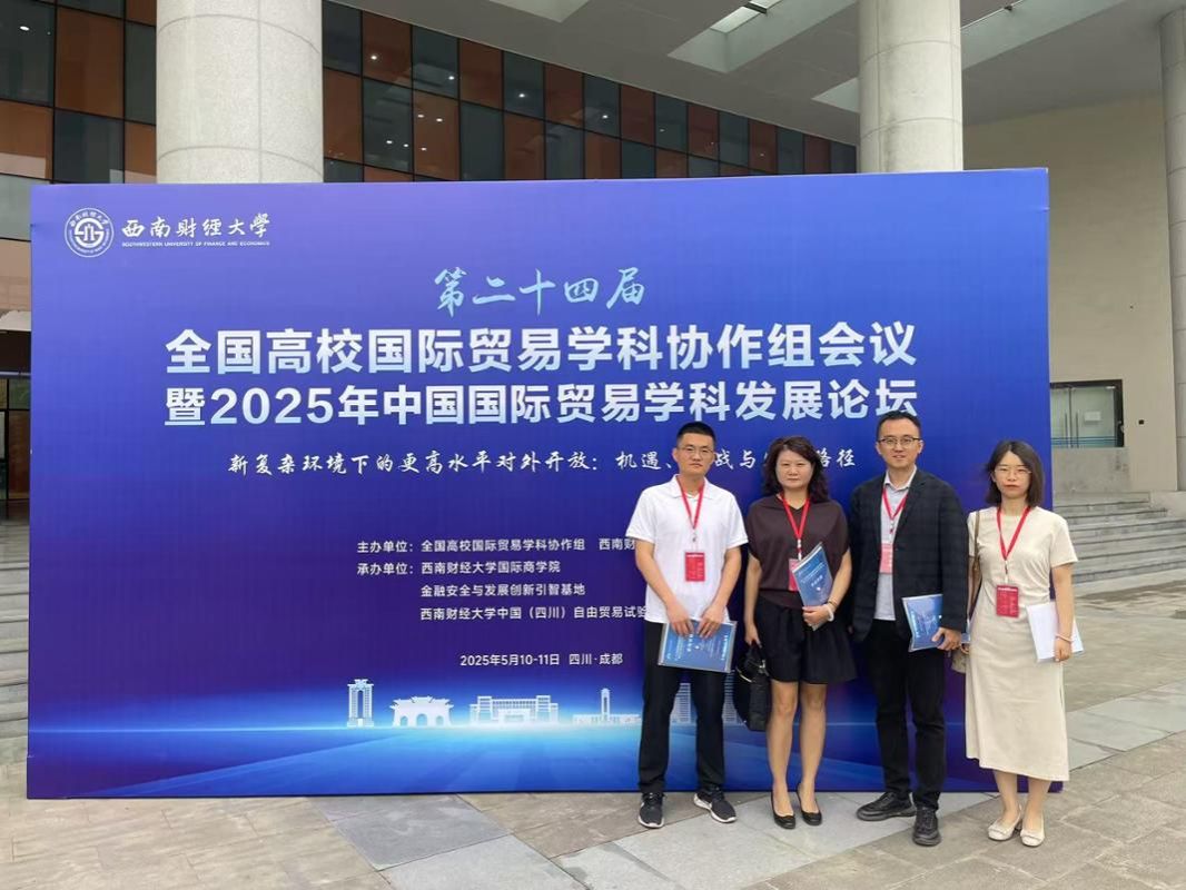 5 月 9 日至 11 日,由全国高校国际贸易学科协作组与西南财经大学联合主办的 “第二十四届全国高校国际贸易学科协作组会议暨 2025 年中国国际贸易学科发展论坛” 在四川省成都市顺利召开。FUN88乐天使积极参与此次学术盛会,张婷、李志楠、胡中立、王亚梅四位教师组成参会团队,同来自复旦大学、中国人民大学等全国100 余所高校及科研机构的 100 余名专家学者、青年学子齐聚一堂,共话国际贸易学科前沿动态,共谋产业升级与高质量发展路径。