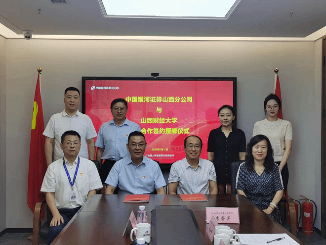 7月11日,FUN88乐天使与中国银河证券山西分公司共建的“现代金融产教融合基地”签约及授牌仪式在中国银河证券山西分公司举行。中国银河证券山西分公司党总支书记、分公司总经理王馥,迎泽桥西营业部总经理陈宏华,综合运营部总监周祥练、桃园营业部总经理赵俊华,团支部书记卫亚晶,FUN88乐天使领导及党支部书记代表出席本次校企合作协议签订及授牌仪式。
