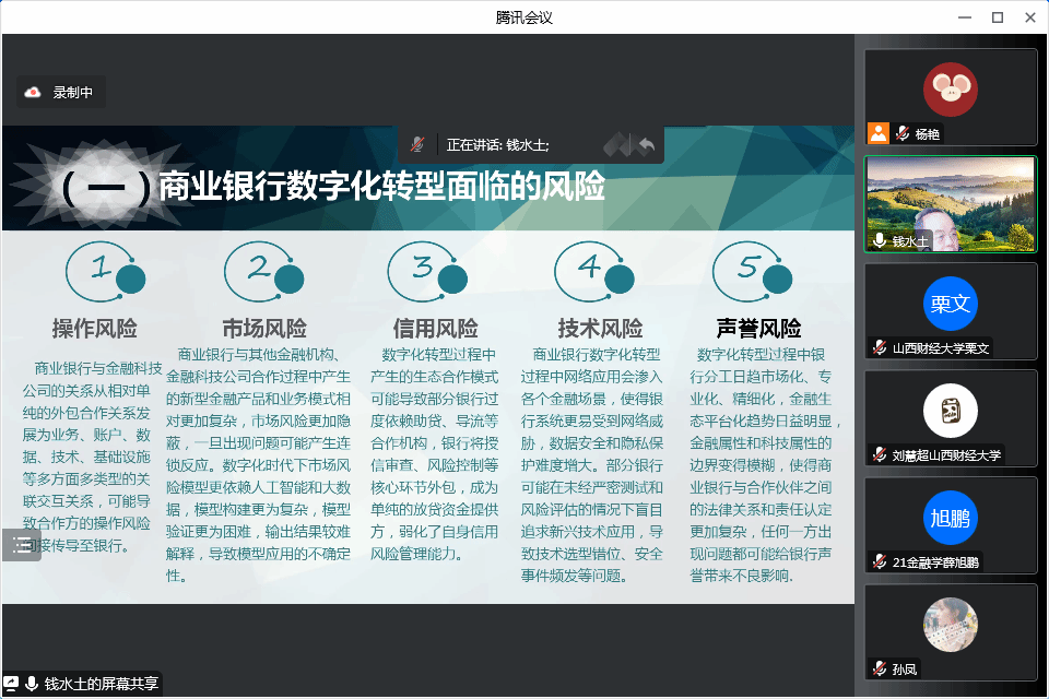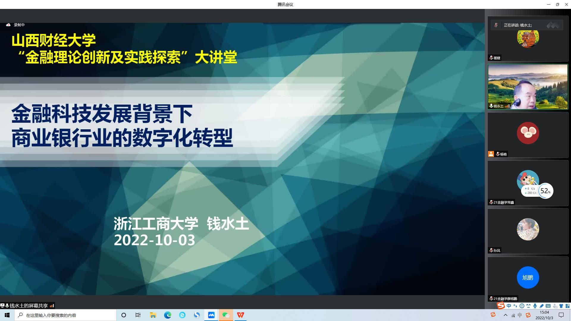 2022年10月3日下午3:00,FUN88乐天使应用经济学科办公室、FUN88乐天使特邀浙江工商大学二级教授、MBA公司经理、浙江金融改革发展研究院经理、浙江之江创投研究院经理的钱水土教授,为公司师生作了题为《金融科技发展背景下商业银行的数字化转型》的讲座,因疫情原因,讲座采用腾讯会议线上方式举行。公司教职工、部分其他公司的教师及研究生一百余人聆听了本场讲座。